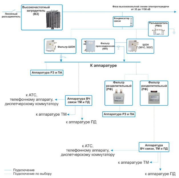 Пример схемы организации ВЧ-каналов по ВЛ